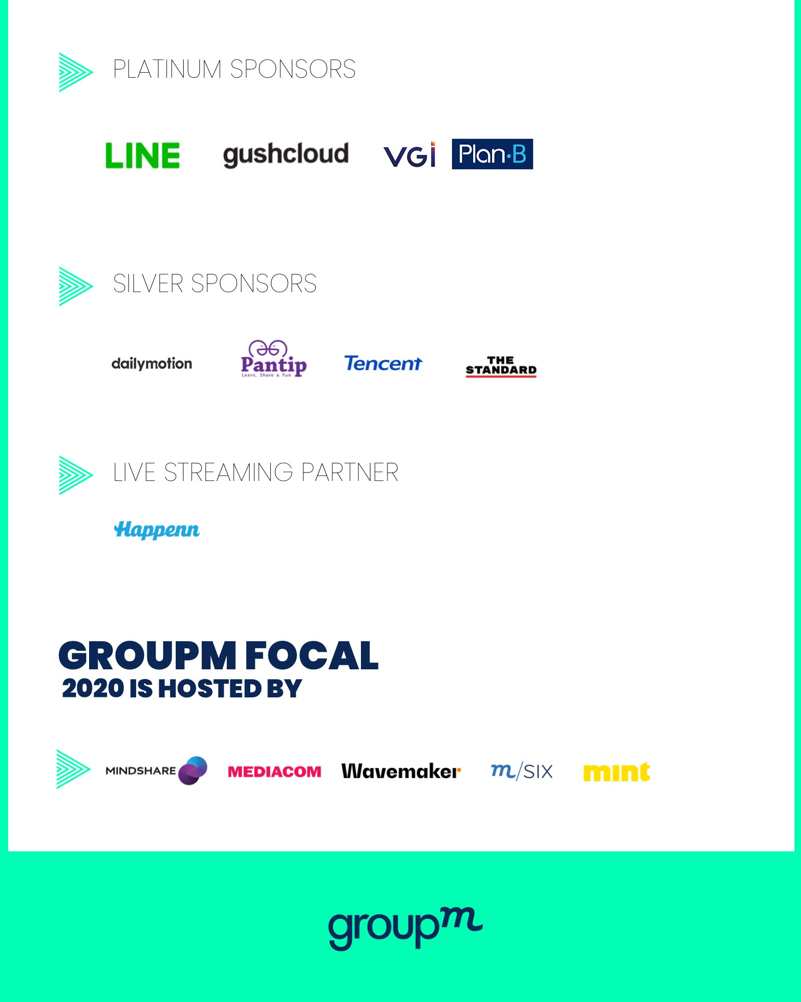 For further information about attending FOCAL 2020, please contact your respective GroupM Agencies in Thailand; Mindshare, m\SIX, MediaCom, Wavemaker, or mInt